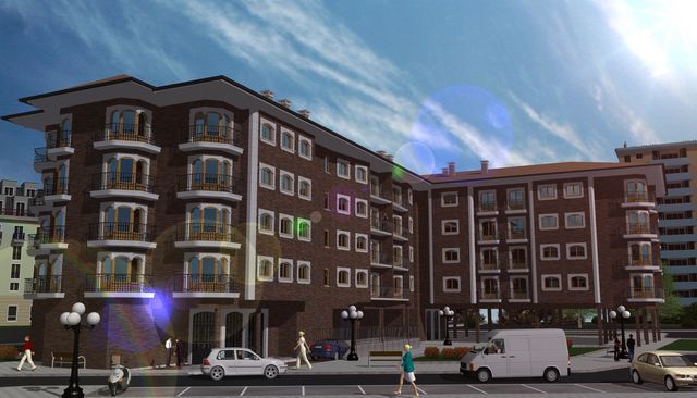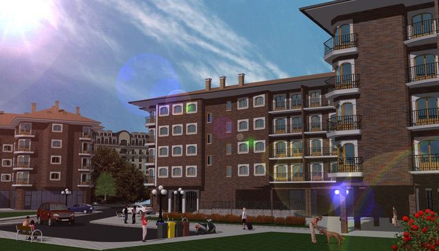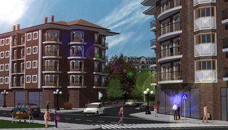 En viviendas duplex: escalera interior en Marmol Crema Marfil con balaustrada en madera de Roble
